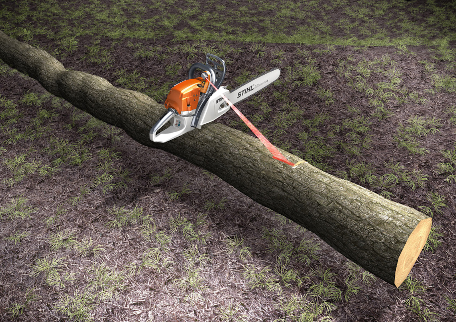 Mit dem Fällrichtungsanzeiger können Sie die Schnitte und ebenso die Fällrichtung kontrollieren.