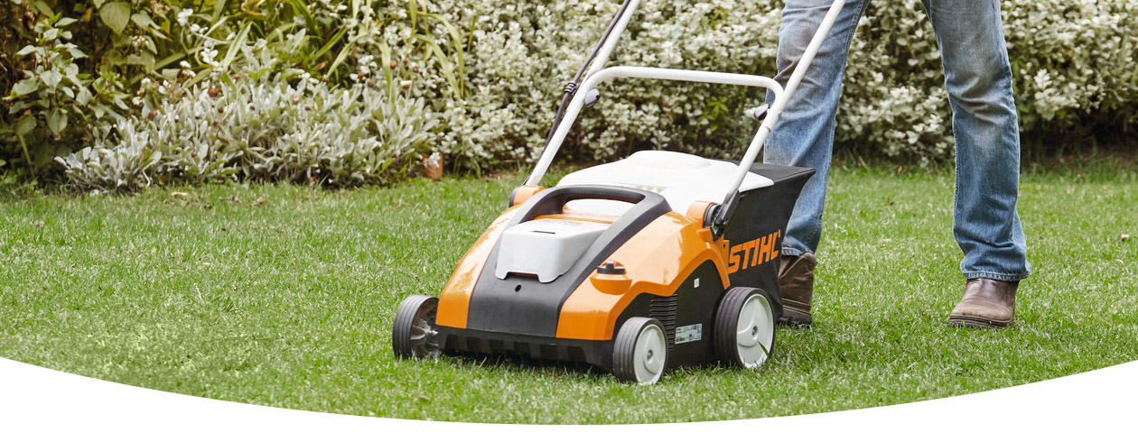 - Kompakter Akku-Rasenlüfter für kleinere, verwinkelte Rasenflächen
