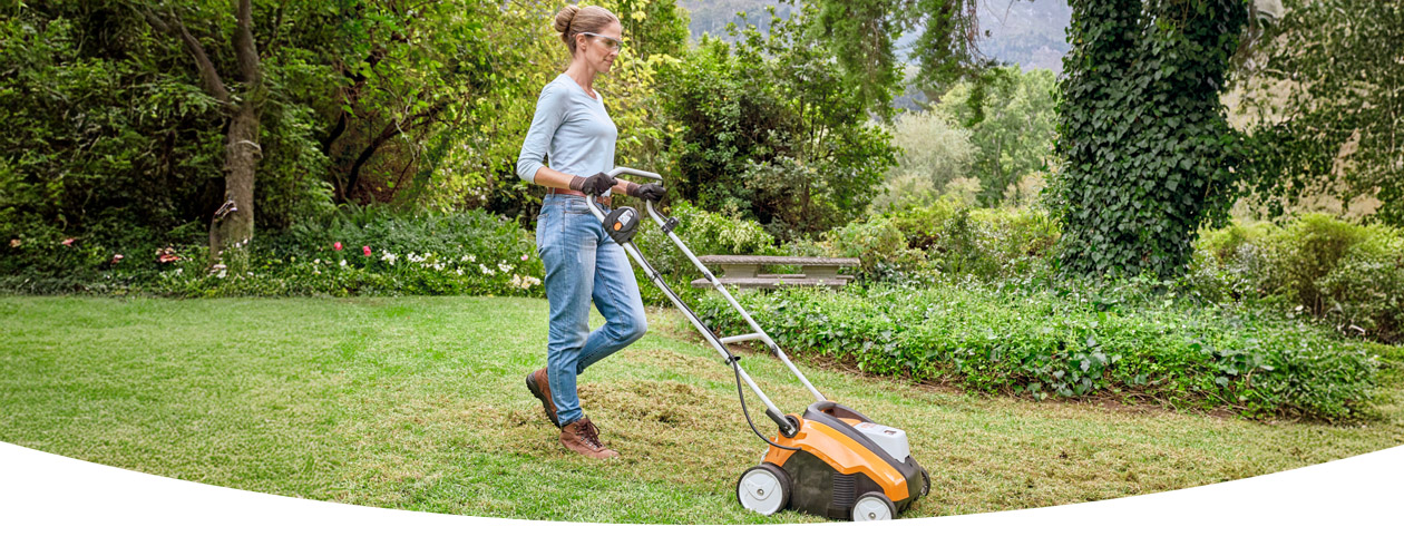 - Mit dem RLE 240 können Sie kleinere Rasenflächen mühelos vertikutieren oder striegeln